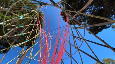 MISTER TRAP by Mark Batongmalaque & Chet Glaze is a variation on the Warka Water Tower designed by Arturo Vittori. When presented with the opportunity to participate in OPAF 21, Mark & Chet brainstormed a few different ideas; Camping, Housing, Vagrancy, & many others, ultimately settling on the idea of Traps. Initially the OPAF project was going to be a series of traps built by both, calling back to the works of Andreas Slominski & Lee Bontecou, & the lifestyle of Dick Proenneke. After recalling reading of an article on the Warka Towers from 2015, Mark & Chet decided to propose the construction of the tower as a collaborative effort.